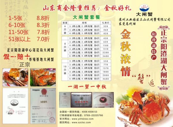阳澄湖大闸蟹,又名金爪蟹。产于苏州阳澄湖。蟹身不沾泥,俗称清水大蟹,体大膘肥,青壳白肚,金爪黄毛。肉质膏腻,十肢矫健,置于玻璃板上能迅速爬行。每逢金风送爽、菊花盛开之时,正是金爪蟹上市的旺季。农历9月的雌蟹、10月的雄蟹,性腺发育最佳。煮熟凝结,雌者成金黄色,雄者如白玉状,滋味鲜美,是享誉中国的名牌产品。