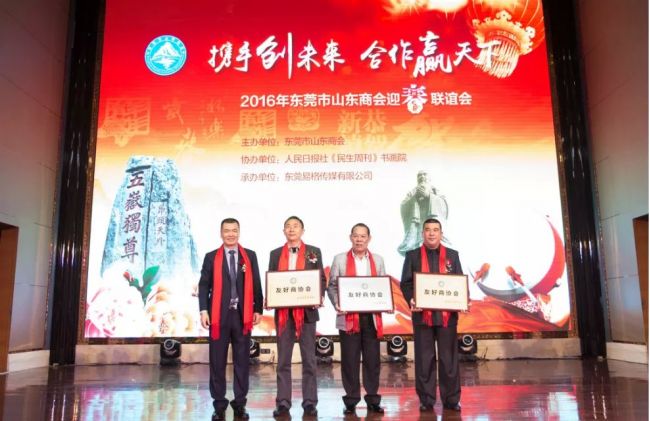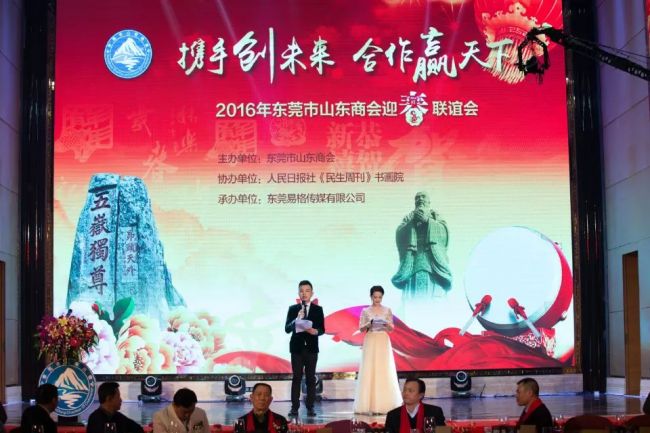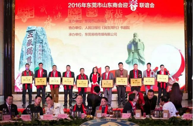 “携手创未来 合作赢天下 ”2016年东莞市山东商会迎春联谊会,在东莞市康帝大酒店三楼中国厅举行。本次联谊会参加人员为党政军企、兄弟商会、商会会员、鲁籍乡贤、各类媒体等各界人仕。共邀请在职及退休领导嘉宾120人,异地商协会、商会会员、乡贤代表及各媒体朋友等800多人参加。