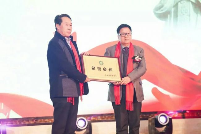 山东省人民政府驻广办崔主任给张伟老大哥颁发名誉会长牌